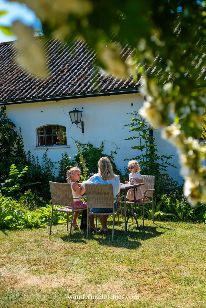 Een dag later stopten we bij Backagården Café, een sfeervol plekje met gebak, koffie en een tuin waar je eigenlijk niet meer weg wilt. Langzaam begonnen we het begrip fika écht te begrijpen.